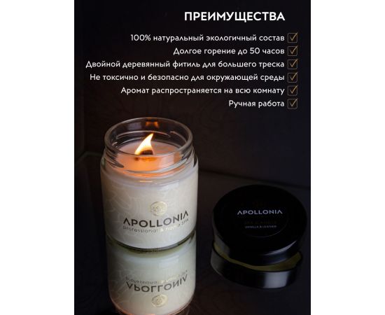 APOLLONIA Ароматическая свеча VANILLA & LEATHER SPA CANDLE 200мл
