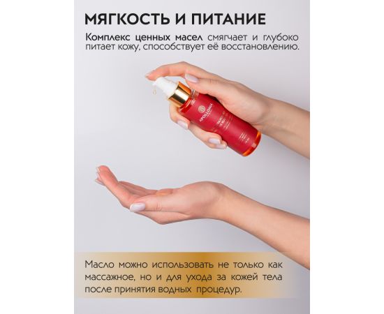 Масло для тела обеспечивает идеальное скольжение и мягкое разогревающее действие, увеличивая эффективность антицеллюлитного массажа. Комплекс ценных масел смягчает и глубоко питает кожу, способствует её восстановлению. Экстракт красного перца борется с признаками целлюлита и отёчностью. Экстракты куркумы, зелёного кофе, имбиря, корицы и донника стимулируют кровообращение и тонизируют кожу, уменьшают выраженность растяжек. Масло подходит для самомассажа.