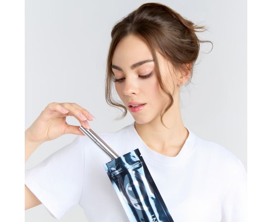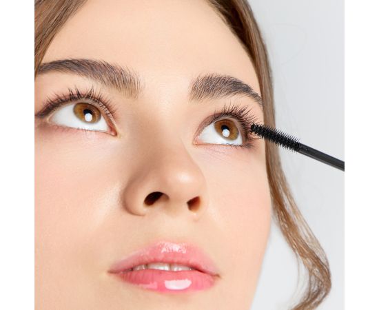 Силиконовая щеточка в форме веретена прекрасно прокрашивает каждую ресничку до самых кончиков, великолепно разделяя и удлиняя их. Ресницы выглядят красивыми, изогнутыми и очень длинными.
