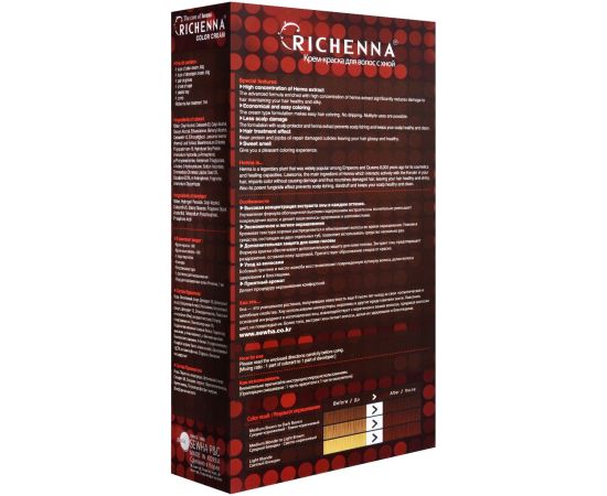 Крем-краска с экстрактом хны мягко окрашивает волосы и дает стойкие насыщенные яркие оттенки. Полностью закрашивает седину, ухаживая за ними благодаря натуральным компонентам. 13 различных оттенков придают волосам живой цвет и насыщенный блеск.