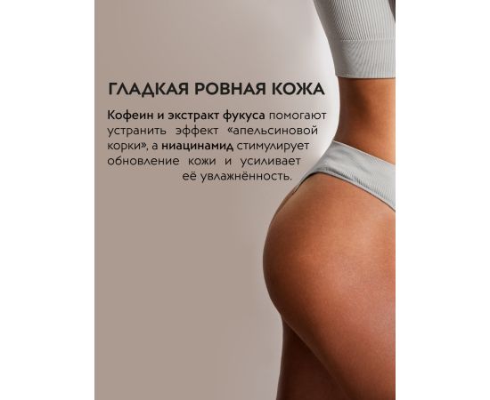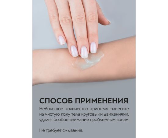 Криогель с охлаждающим эффектом активно борется с проявлениями целлюлита, усиливает микроциркуляцию, подчёркивает контуры тела. Кофеин и экстракт фукуса помогают устранить эффект "апельсиновой корки", а ниацинамид стимулирует обновление кожи и усиливает её увлажнённость. Мягкое охлаждение в сочетании с дренажным действием уменьшают отёчность и дарят эффект "лёгких" ног после тяжелого дня. Текстура геля быстро впитывается и легко распределяется по коже.