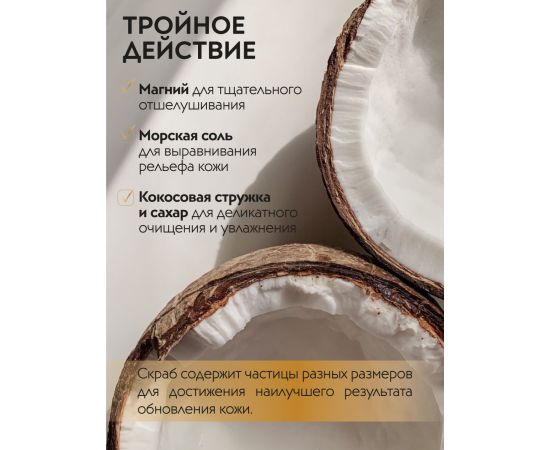 Способ применения: нанесите на влажную кожу и массируйте круговыми движениями в течение 2-3 минут, уделяя особое внимание проблемным зонам. Тщательно смойте. Рекомендуется использовать 2-3 раза в неделю.
