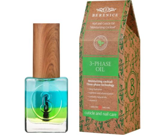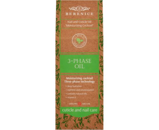 Инновация в уходе за ногтями и кутикулой от BERENICE – трёхфазное масло. Коктейль из трёх видов натуральных масел глубоко питает, увлажняет и восстанавливает даже самые сухие и повреждённые ногти. Насыщает ногти витаминами и микроэлементами. Делает кутикулу нежной и ухоженной.